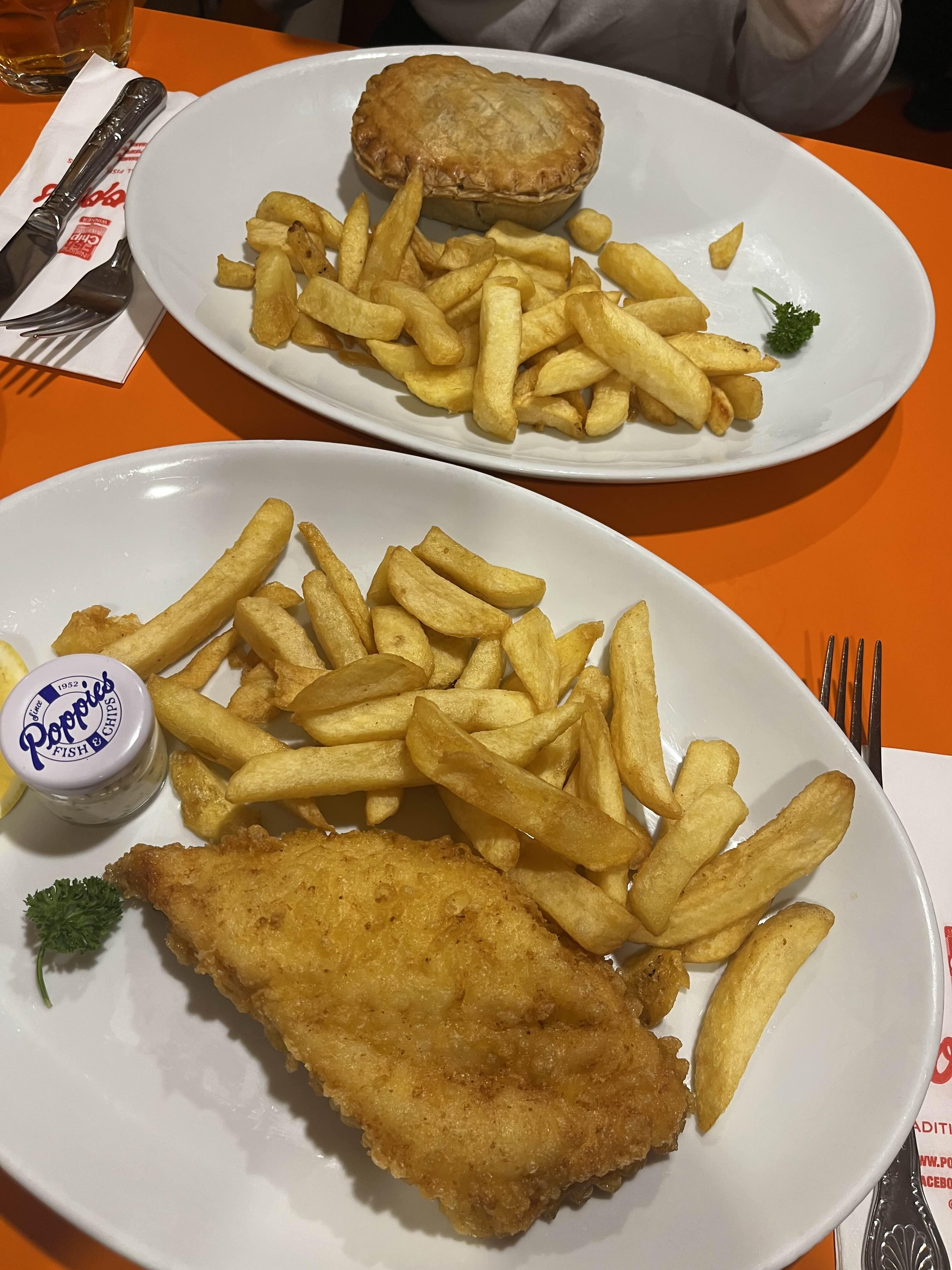 피쉬앤칩스랑 미트파이를 시켜 먹었다~~